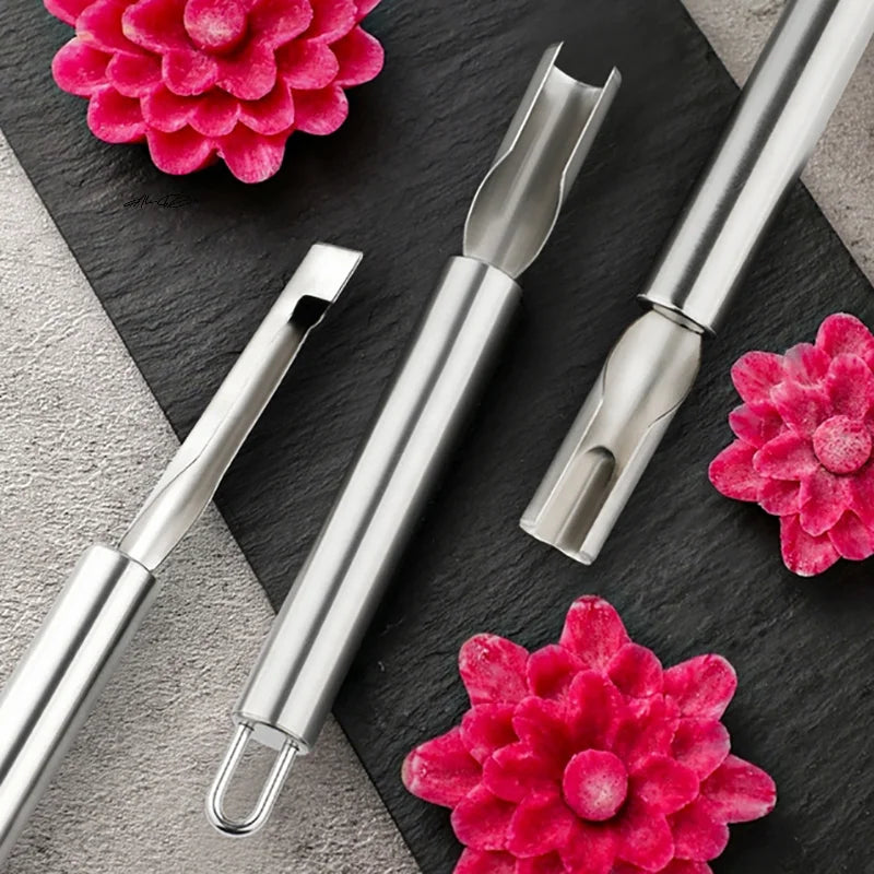 Perfect for carving semicircle, water drop, and petal shapes in fruits, vegetables, and even cakes.
