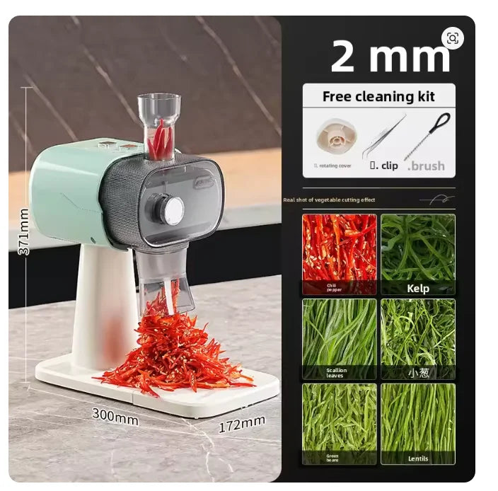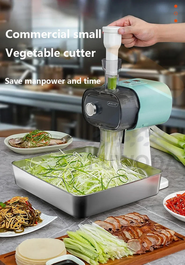 Effortlessly shred scallions, green onions, chili, and bean sprouts with this fully automatic commercial electric vegetable cutter. Designed for speed and efficiency, it saves time in busy kitchens and ensures consistent, uniform cuts.