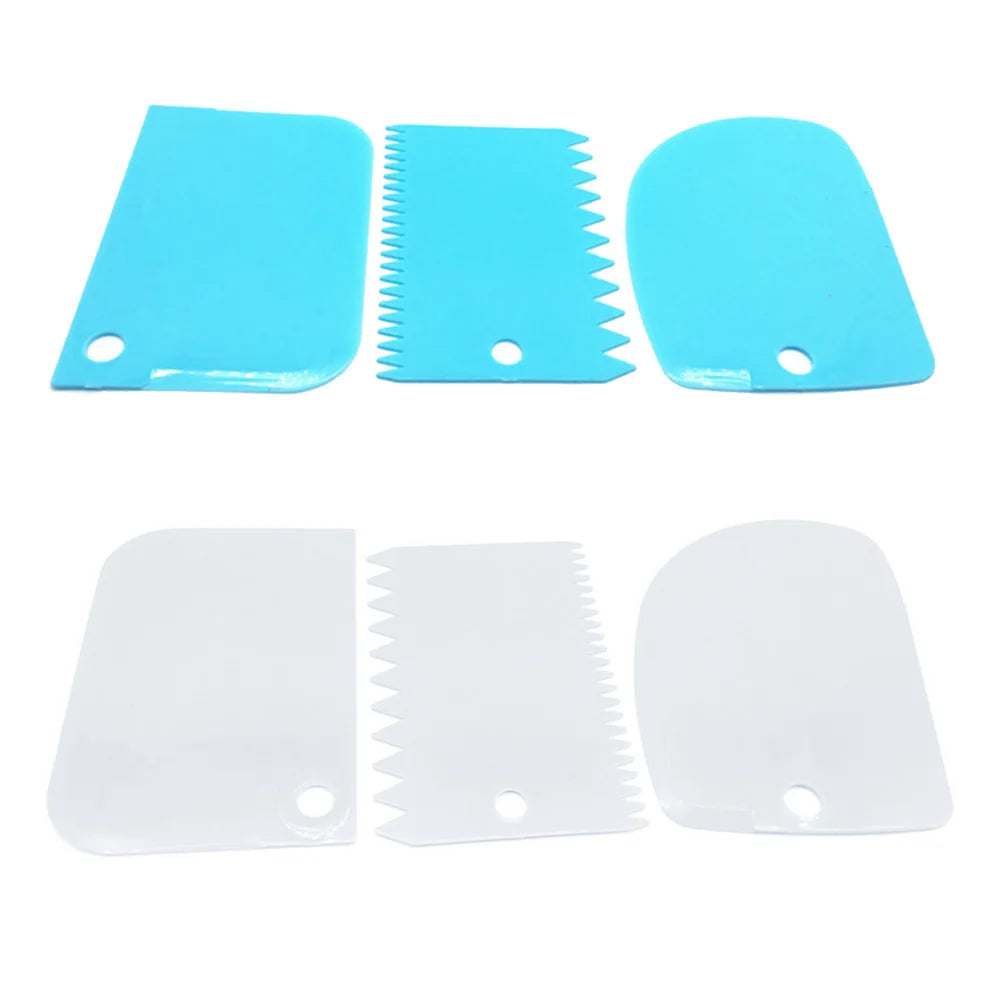 Achieve clean edges and beautiful cake designs with this 3-piece cream scraper set. Perfect for DIY baking and professional cake decorating, these versatile tools help you spread, shape, and style cream, butter, and fondant with ease.