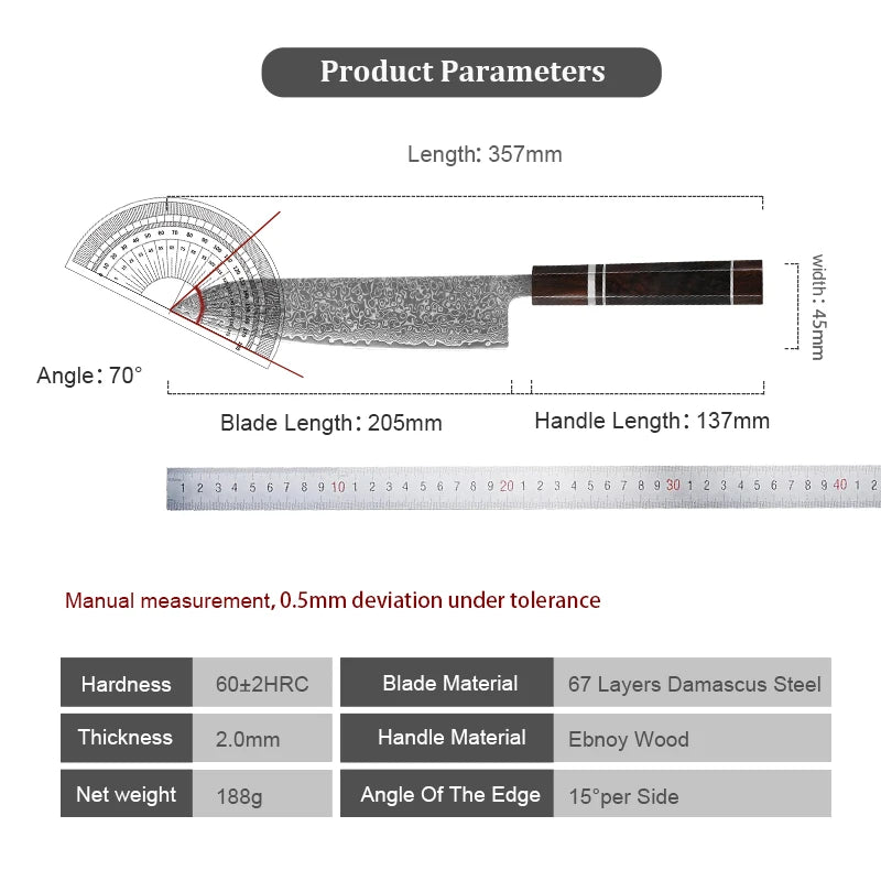 Crafted from high-quality Damascus steel with a core hardness of 60Β±2 HRC, delivering exceptional sharpness, durability, and edge retention.