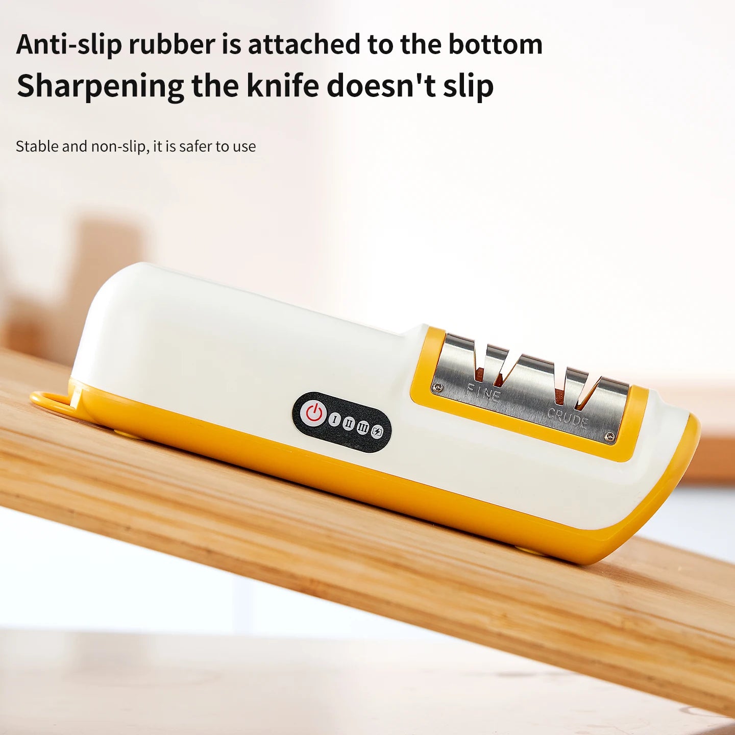 Keep your kitchen knives razor-sharp with this multifunctional electric knife sharpener. Designed with 3 adjustable gears and USB charging, it delivers quick, safe, and professional sharpening at home.