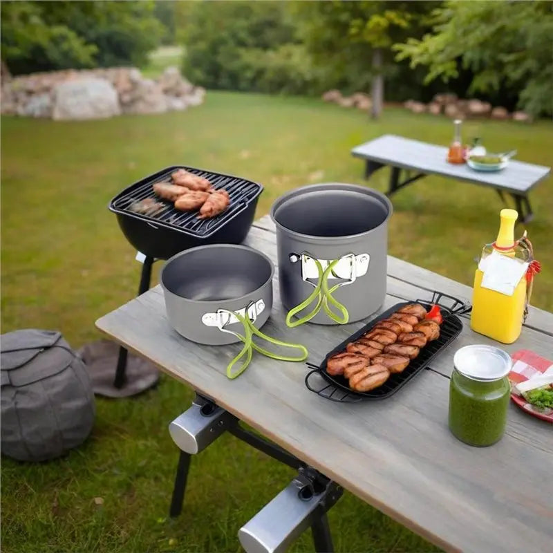 Enjoy hassle-free outdoor cooking with this portable camping pot set. Made from durable hard aluminum alloy, this compact cookware kit is designed for 1–2 people and is perfect for camping, hiking, and picnic adventures.