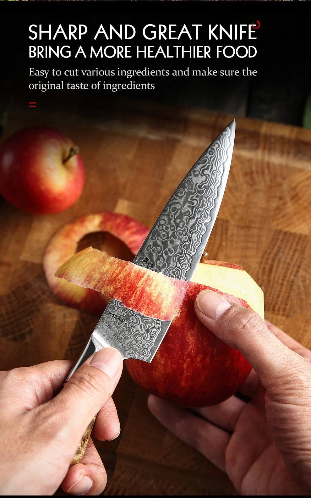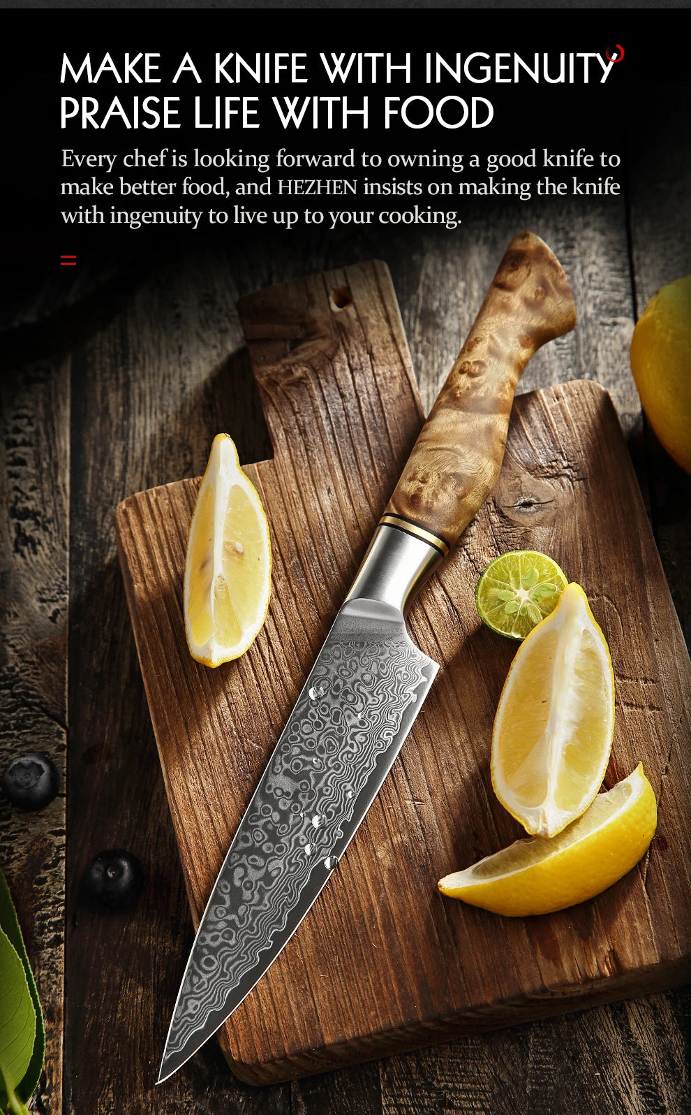 Experience precision, beauty, and power with the HEZHEN Master Series 5-inch utility knife. Crafted from real 67-layer Damascus super steel with a high-performance core, this knife delivers exceptional sharpness and durability—perfect for peeling, slicing, and fine kitchen work.