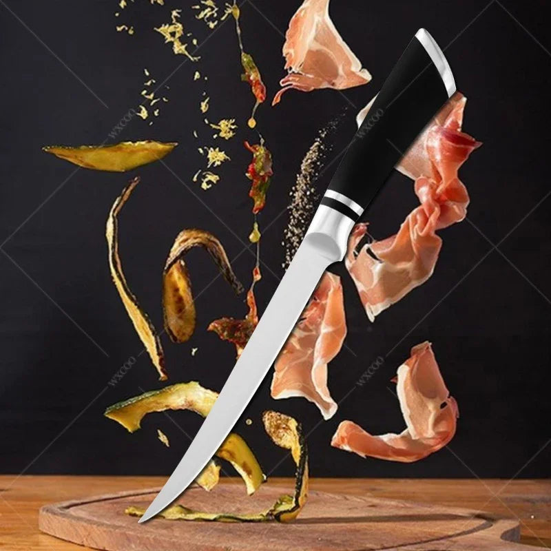 Expertly slices salmon, sushi, beef, poultry, and vegetables with clean precision—ideal for sashimi and boning tasks.