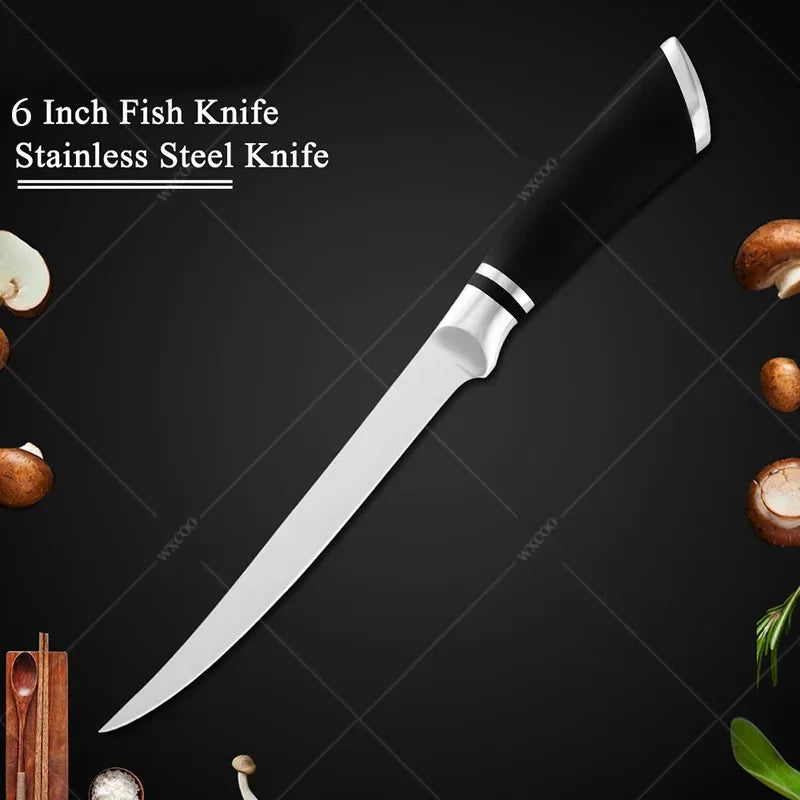 Master precision slicing with this Japanese-style sashimi and meat cleaver knife. Crafted from premium 5Cr15 stainless steel, it’s perfect for cutting fish, meat, vegetables, and fruits—ideal for chefs and home cooks seeking balance, sharpness, and control.