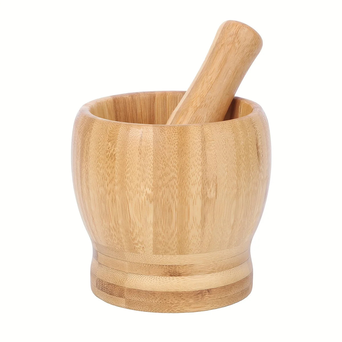 Easily crush, grind, and mash spices, herbs, garlic, and more with this eco-friendly bamboo mortar and pestle set. Perfect for enhancing flavors and aromas in your kitchen while adding a natural touch to your cooking tools.