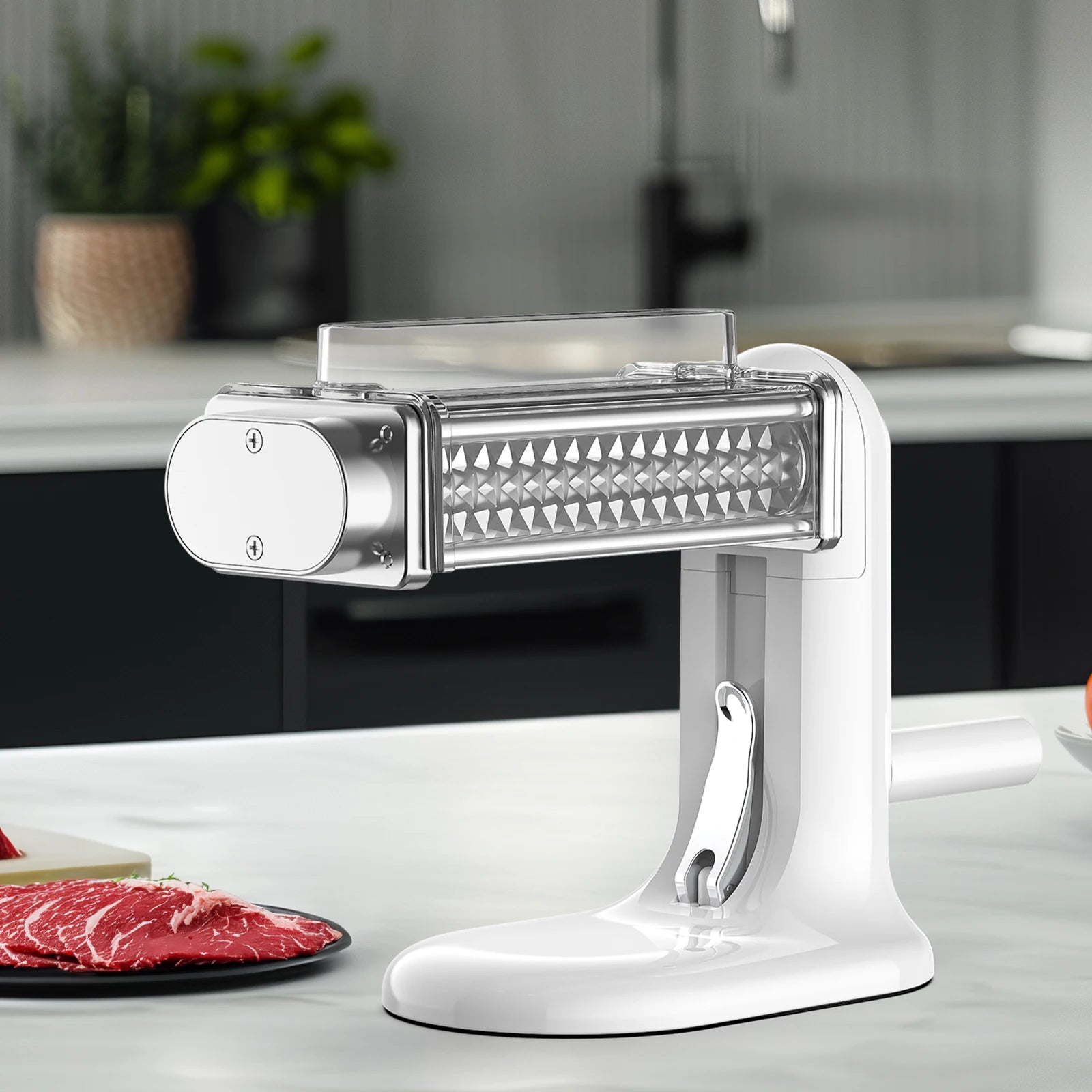 Enjoy tender, juicy meat every time with this manual meat tenderizer machine. Designed with durable stainless steel gears and a stable suction base, it evenly tenderizes steaks, poultry, and other cuts for professional-quality results at home.