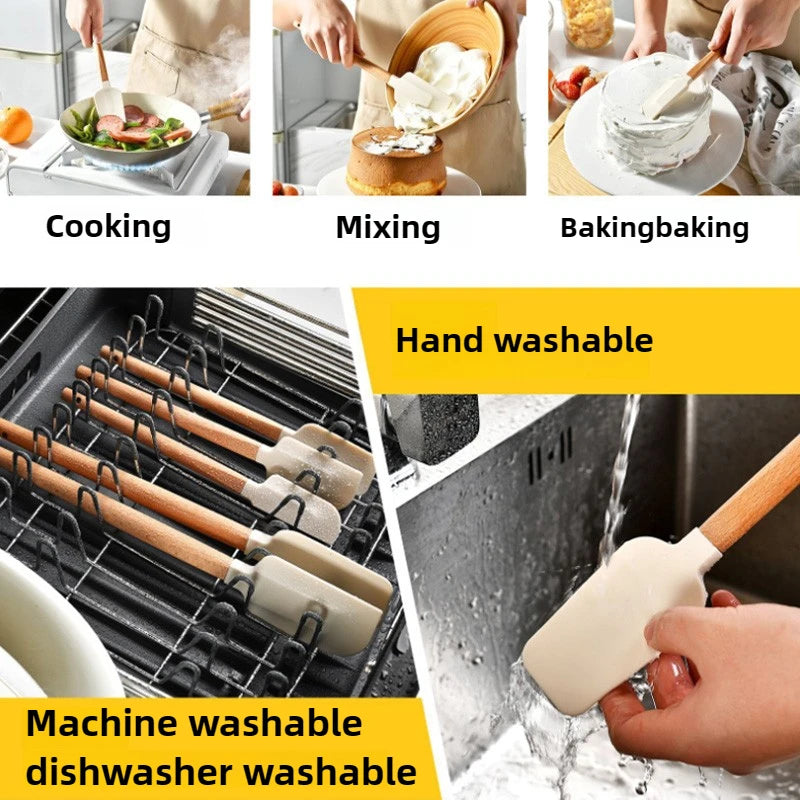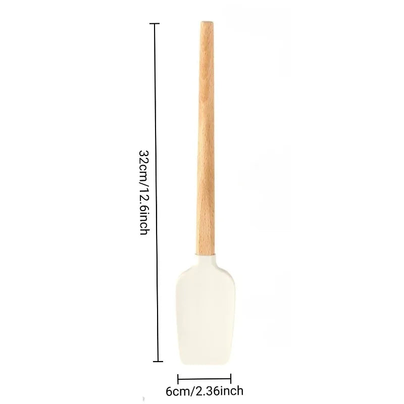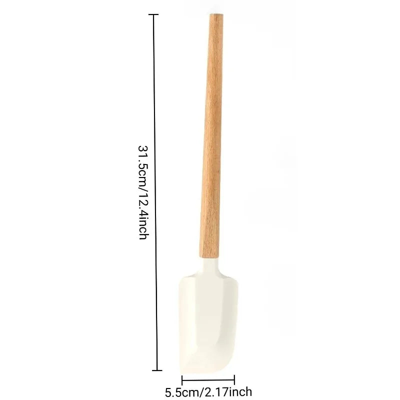 I use this spatula to whip cream, spread cake icing evenly, and scrape every bit of batter from mixing bowls. The heat-resistant silicone works great while cooking, and the wooden handle feels comfortable even during long use.