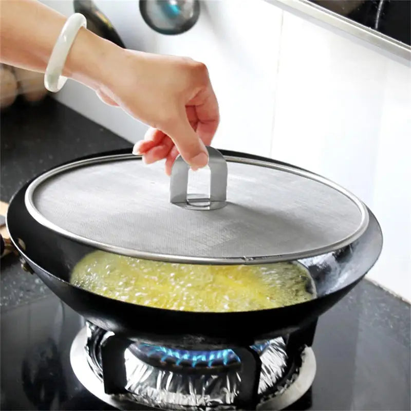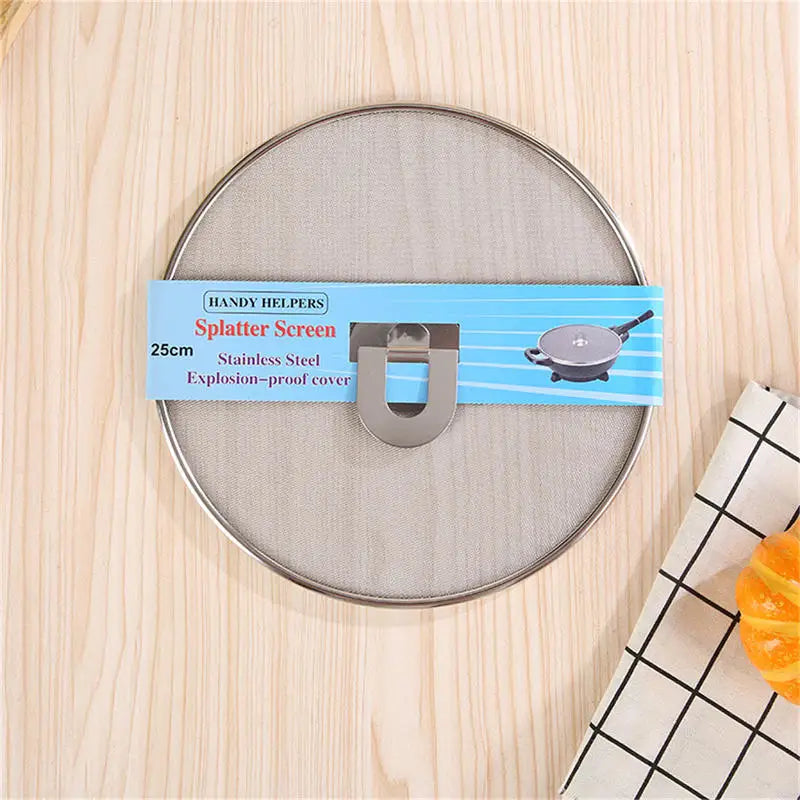 Cook smarter and cleaner with this practical stainless steel splatter screen. Designed with fine mesh protection, it prevents hot oil splashes while allowing steam to escape—keeping your kitchen safe, clean, and mess-free during frying and cooking.