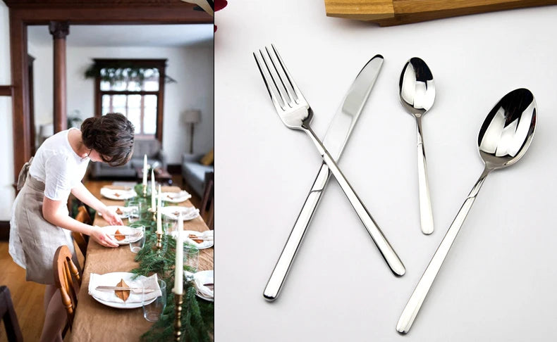 Upgrade your dining experience with this premium 24-piece stainless steel flatware set, designed for style, durability, and comfort. Whether for daily meals, family gatherings, hotels, restaurants, or parties—this set delivers both elegance and performance.