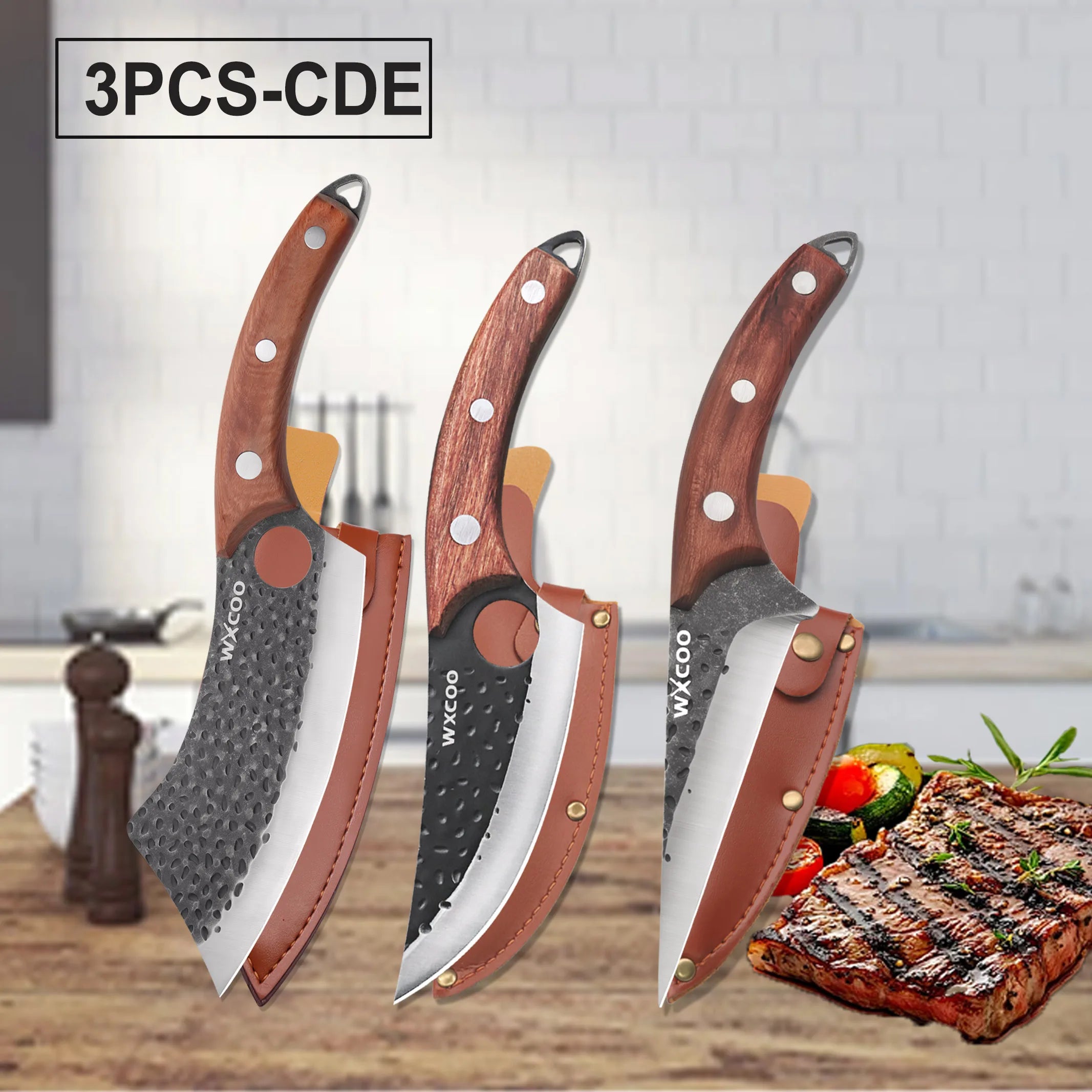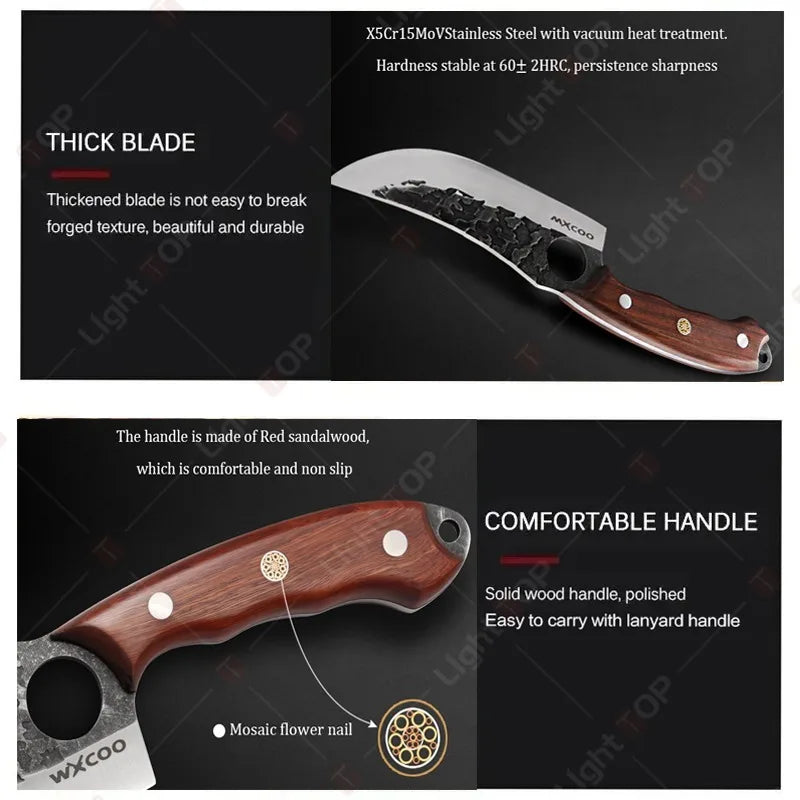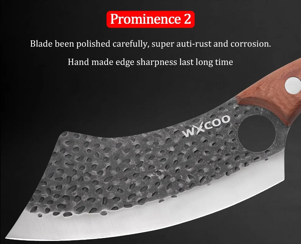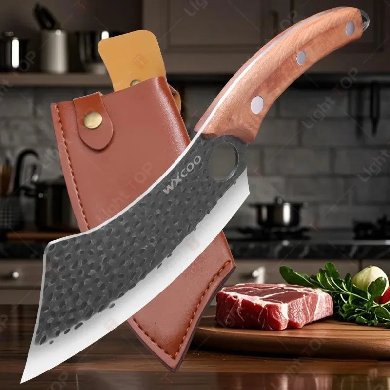 Cook with confidence using the WXCOO professional hand-forged kitchen knife. Built for strength, sharpness, and comfort, this versatile chef knife is ideal for BBQ cooking, meat cleaving, boning, and everyday kitchen prep.