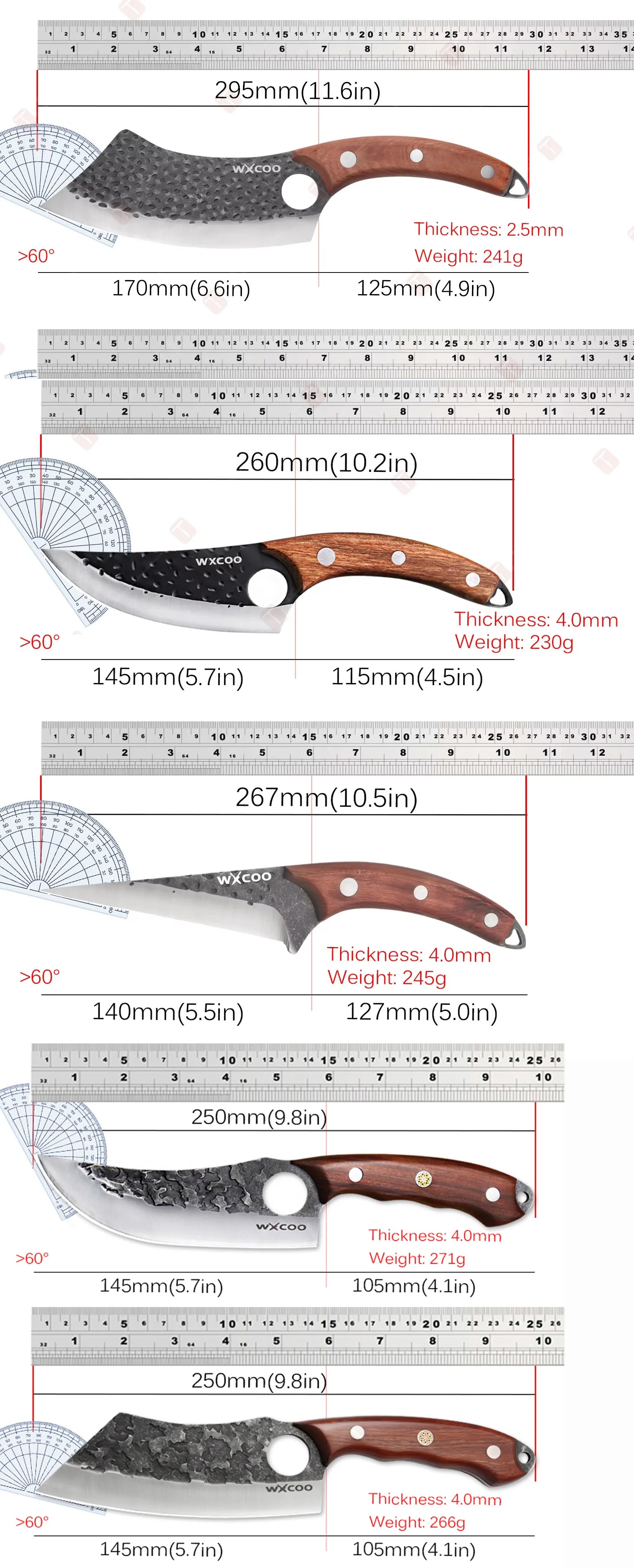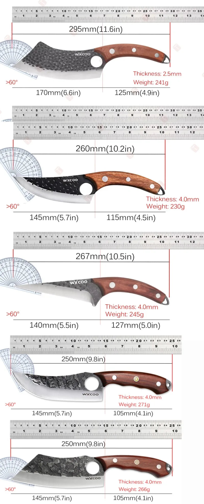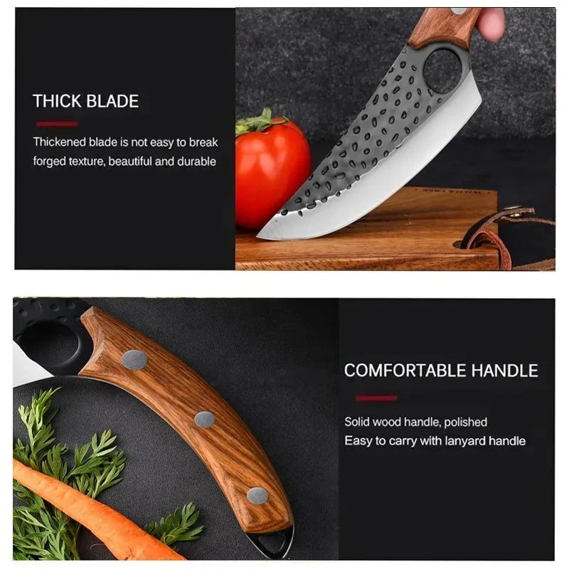 Cook with confidence using the WXCOO professional hand-forged kitchen knife. Built for strength, sharpness, and comfort, this versatile chef knife is ideal for BBQ cooking, meat cleaving, boning, and everyday kitchen prep.