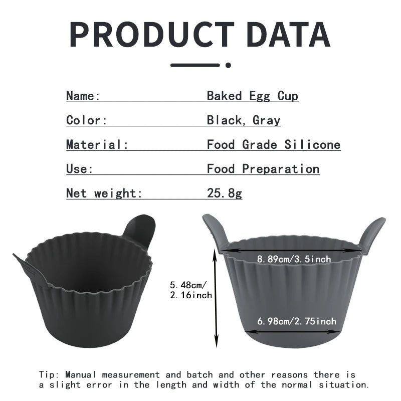 Cook eggs, cupcakes, or desserts easily with these silicone baking cups. Perfect for air fryers, ovens, and microwave use, they are reusable, eco-friendly, and convenient.