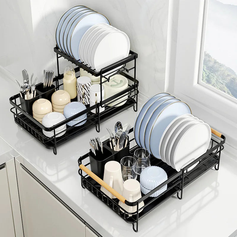 Keep your kitchen countertop clean and organized with this modern 2-tier dish drying rack. Designed for maximum storage in minimal space, it holds dishes, bowls, utensils, and more—all while allowing fast drying and proper ventilation.