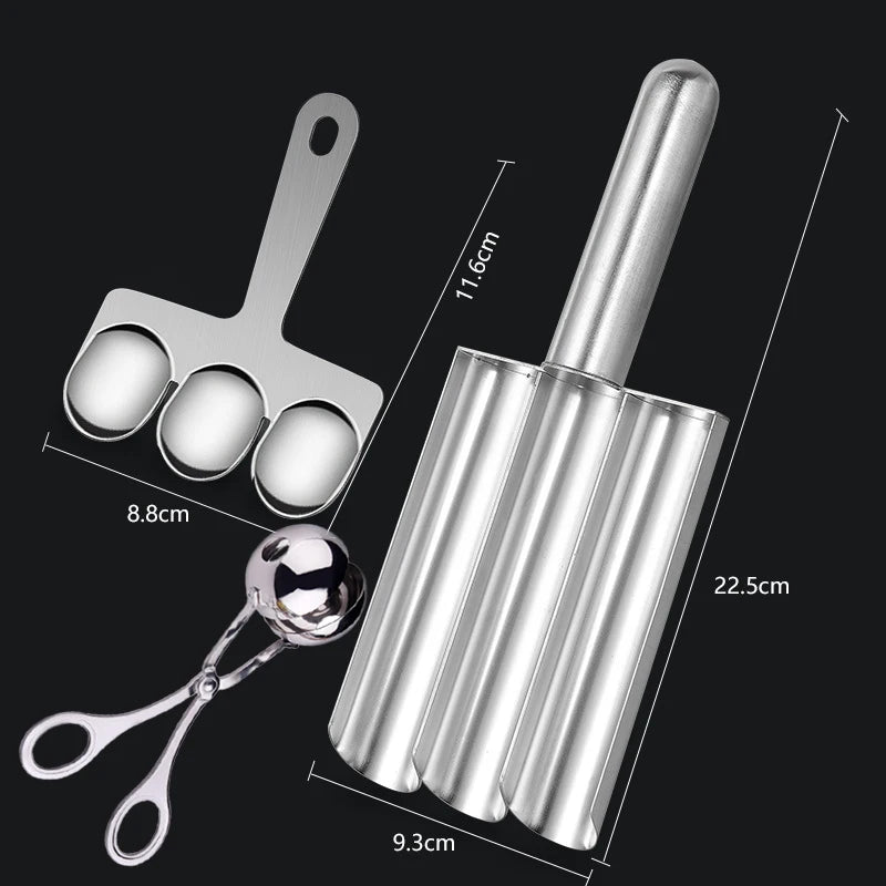 Creates three uniform meatballs at once, saving time and effort while ensuring consistent shapes.