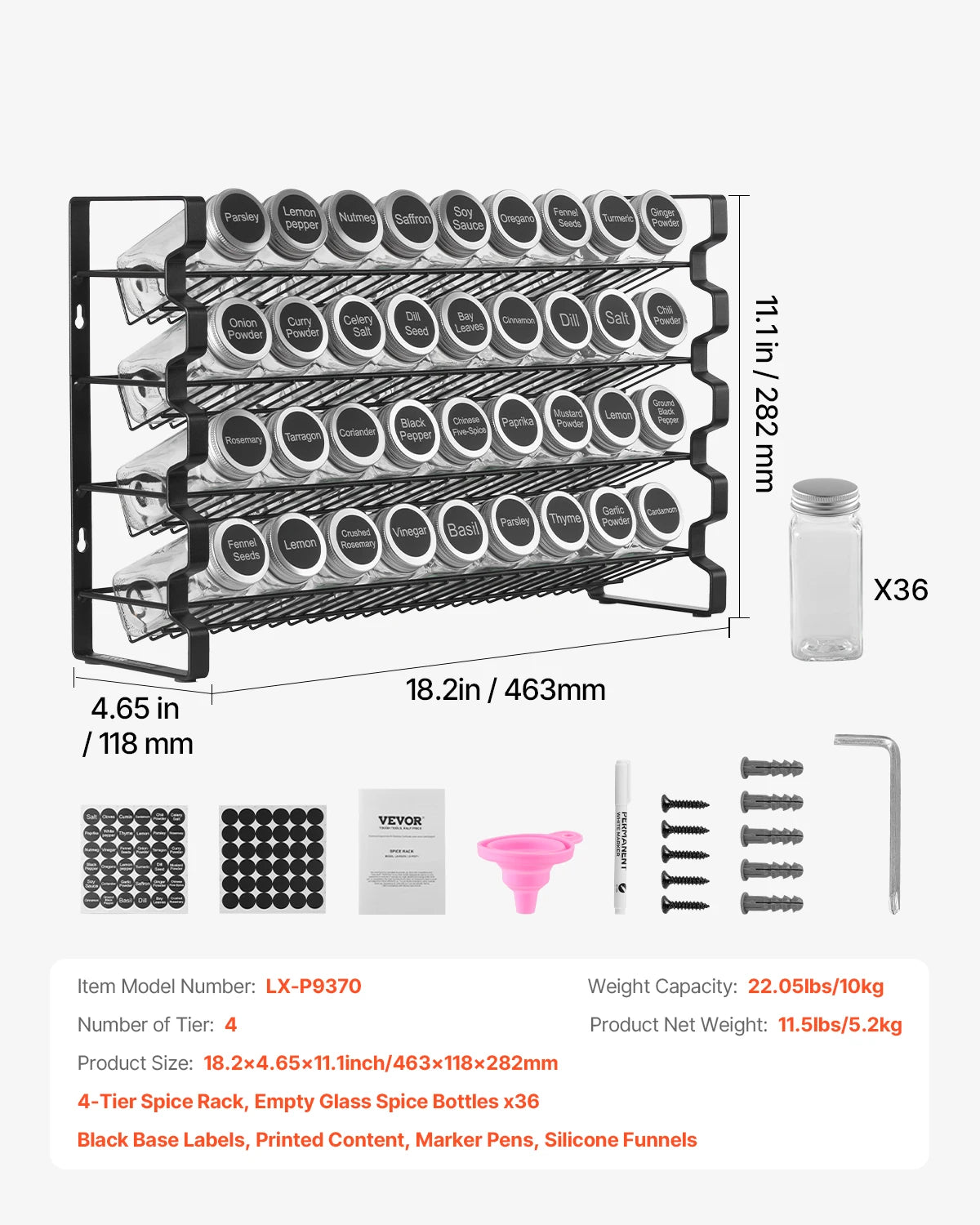 Includes spice labels and a funnel for easy filling, giving you a fully organized and professional kitchen setup.