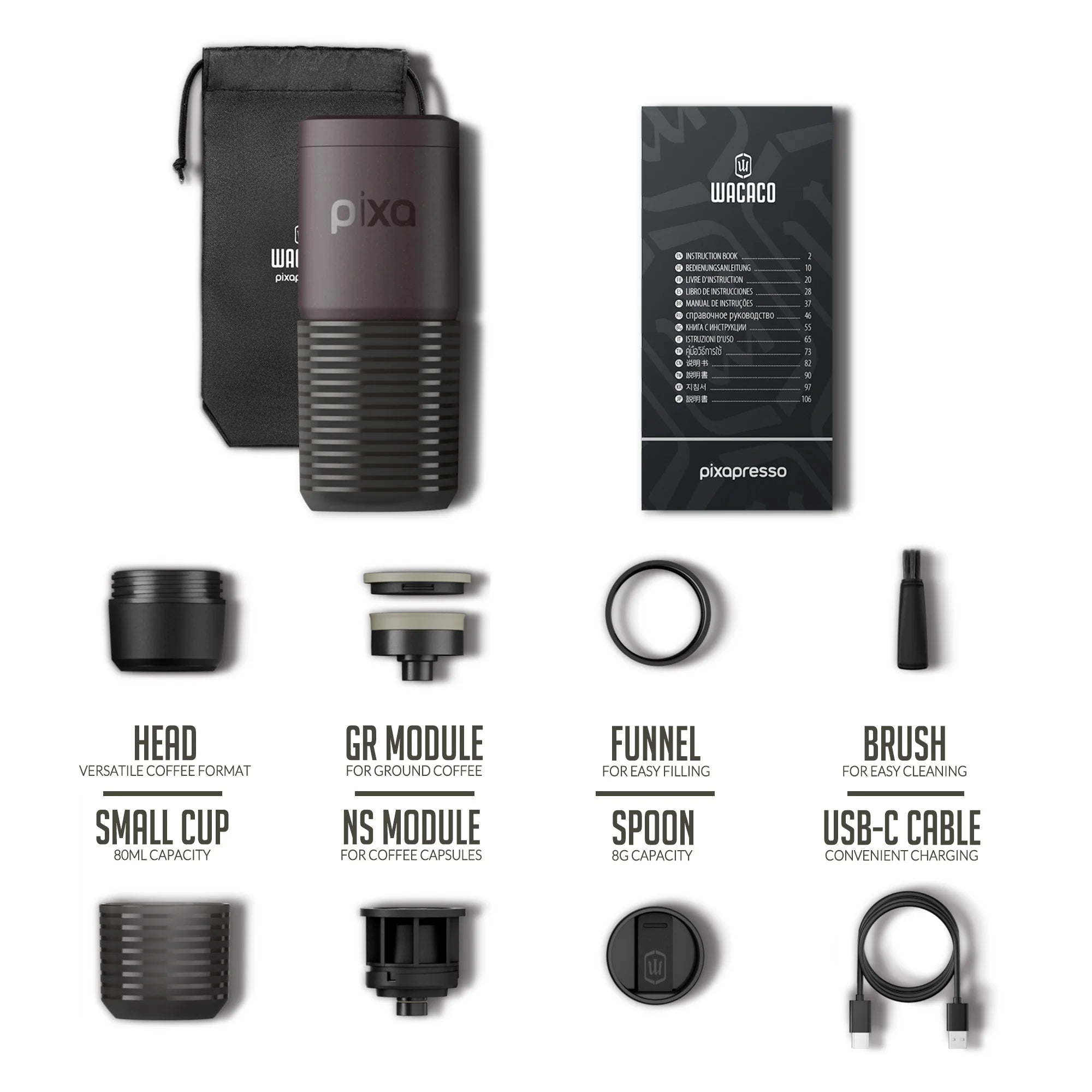 Enjoy café-quality espresso anywhere with the WACACO PIXAPRESSO. This compact and powerful electric espresso machine is designed for coffee lovers who want rich flavor and convenience at home, in the office, or on the go.