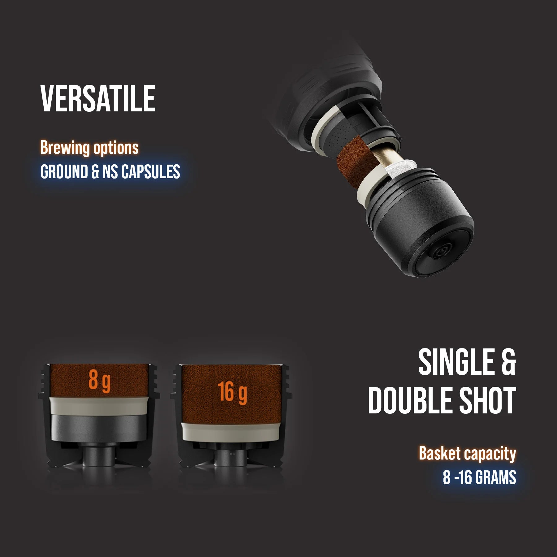 Brew using both ground coffee and NS capsules, giving you flexibility to enjoy your preferred coffee style.